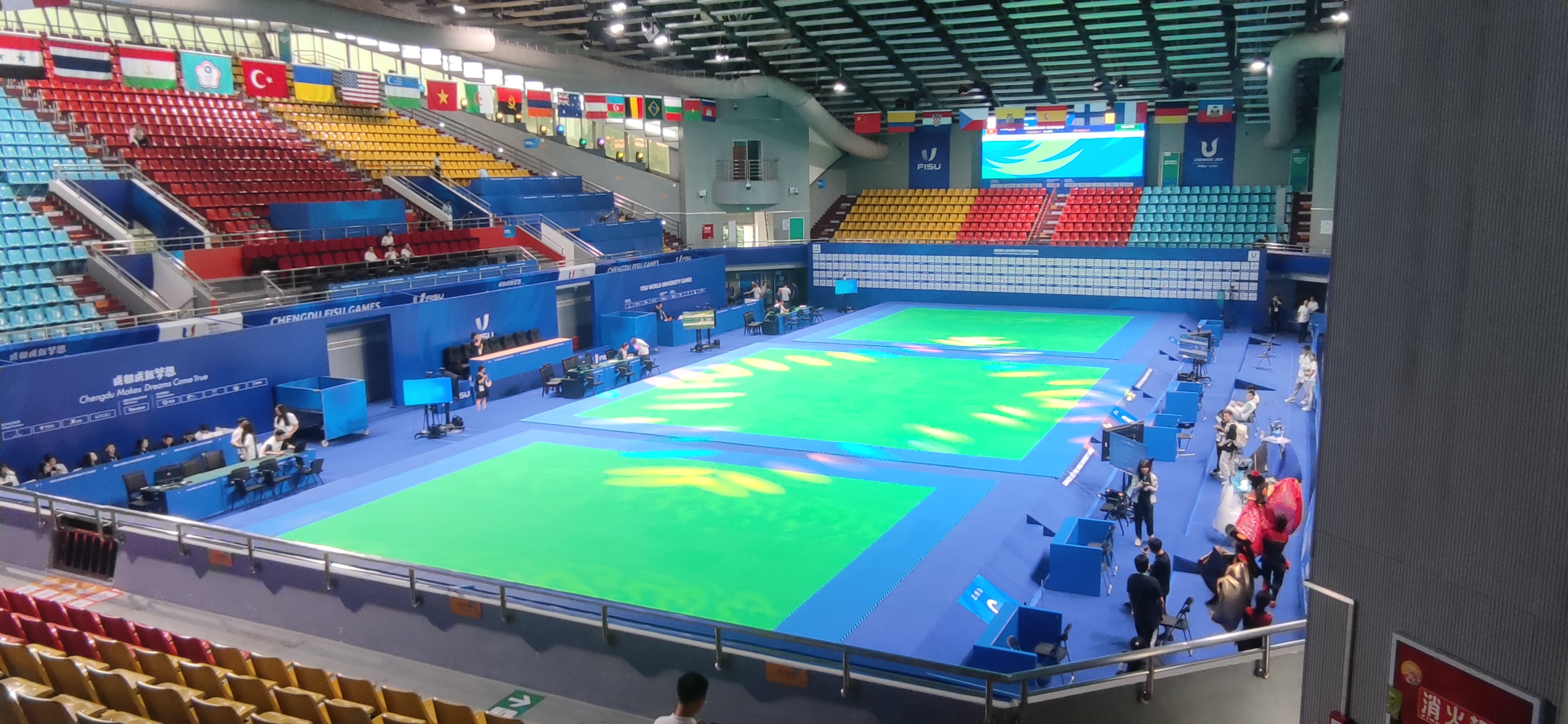 本次大运会金年会|jinnianhui提供的产品涉及柔道、跆拳道、武术、田径、竞技体操、艺术体操等六大比赛项目上万件器材,占大运会所有比赛项目的三分之一,并且全部通过国际认证,产品设计也实现了科技与体育的完美结合,是公司竞技体育领域的“拳头”产品,特别是全球首创并通过国际认证的碳纤维体操器材和智能智慧体育器材,曾多次在大赛上赢得运动员、教练员的一致赞誉。